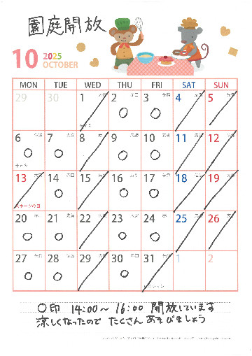 ※園庭入り口付近に設置してある消毒液で、必ず手指の消毒をしてからご利用下さい。