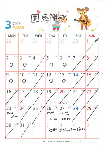 ※休園日、長期休みの指定日外は、開放しません。